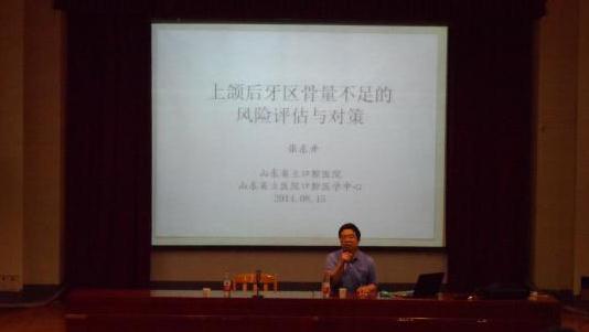 随后,张教授作了题为《口腔颌面外科和种植新进度》的学术报告。报告中,张教授主要从上颌后牙区骨量不足的风险评估以及应对此类风险问题的解决策略这两个方面向大家介绍了牙种植的新进度,并为大家展示了牙种植手术中用到的一些先进的手术器械,使同学们在口腔方面的医学视野得到了很好的拓展。