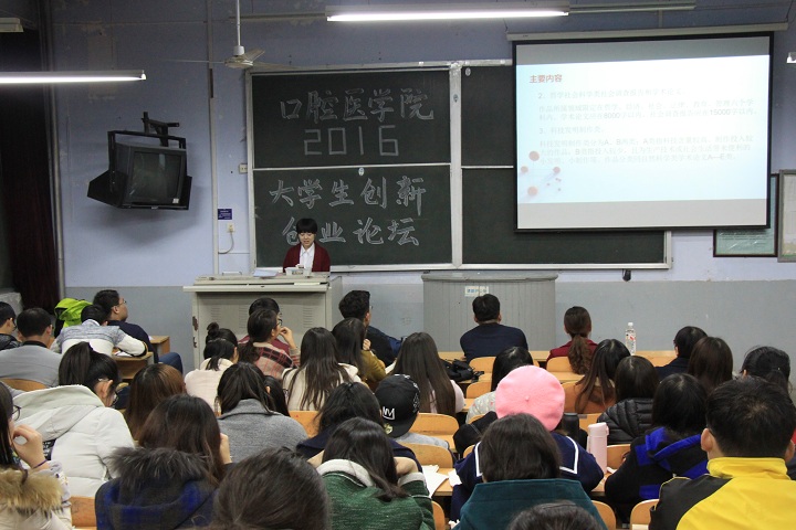 为了激发大学生创业热情,加强大学生对创业的认识,口腔医学院于11月17日在天外村校区教学楼107教室成功举行了“口腔医学院2016年大学生创新创业论坛”,口腔医学院党总支副书记孔志峰老师出席并主持本次论坛。